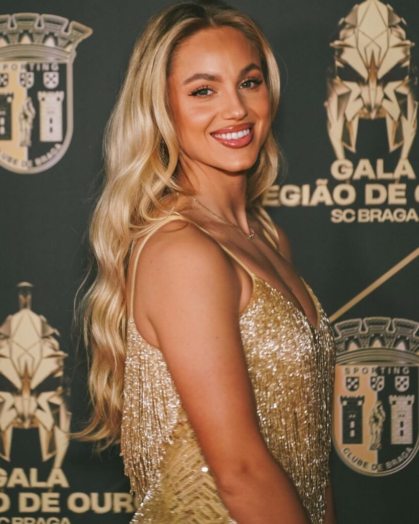 The rising fashion icon and social media sensation turned heads as she posted pictures of herself in a dazzling gold fringe dress, captioned simply, “Golden girl✨ Gala de SC Braga 2025.”