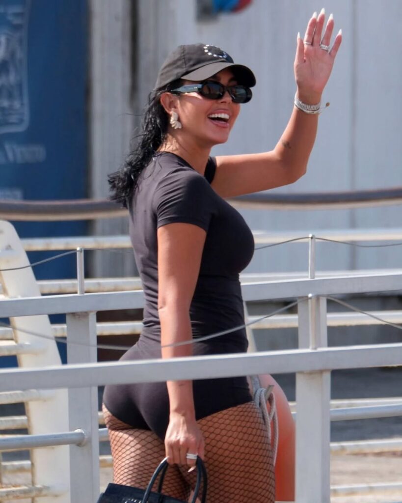 In high spirits, she smiled and waved to cameras on the dock, effortlessly stealing the spotlight.